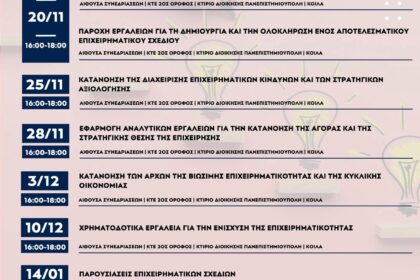 Παροχή εργαλείων για τη δημιουργία και ολοκλήρωση επιχειρηματικού σχεδίου - 25/11 – 16:00–18:00