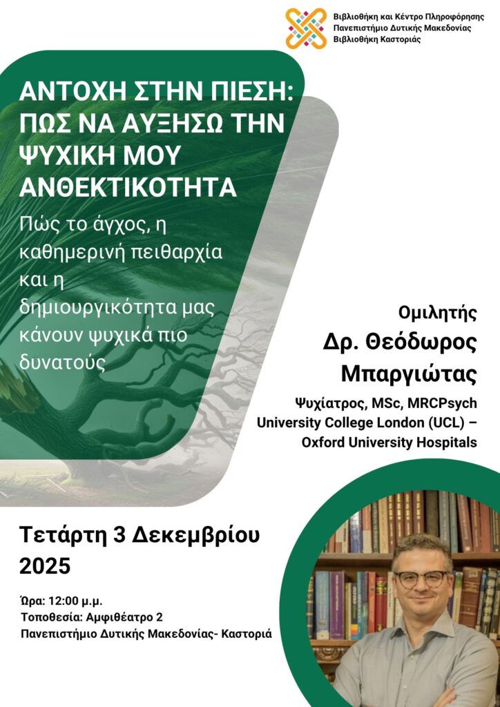 Ομιλητής: Dr Θεόδωρος Μπαργιώτας, Ψυχίατρος, MSc, MRCPhych, University College London (UCL)- Oxford University Hospitals